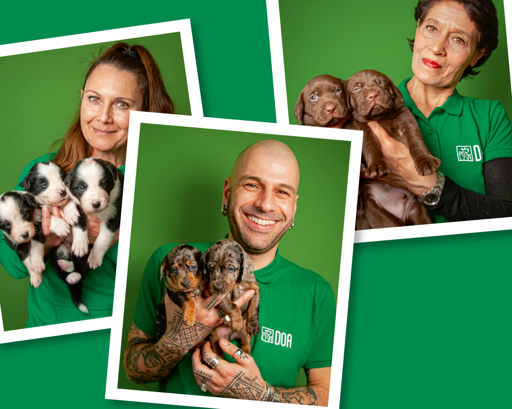 Tanja: ‘Wij vinden het allemaal superleuk om onderdeel te zijn van het puppyteam. Wat is nou mooier dan werken met baby’s? Iedere dag is anders; als je binnenkomt weet je nooit precies hoe de dag zal gaan. Je moet goed in de gaten houden of het goed gaat met ze. Er is regelmatig iets aan de hand met één van de pups en dan ga je aan de slag. De ene dag gaan we met ze naar buiten (vanaf 6 weken) en de andere dag stoppen we ze lekker allemaal in bad.’