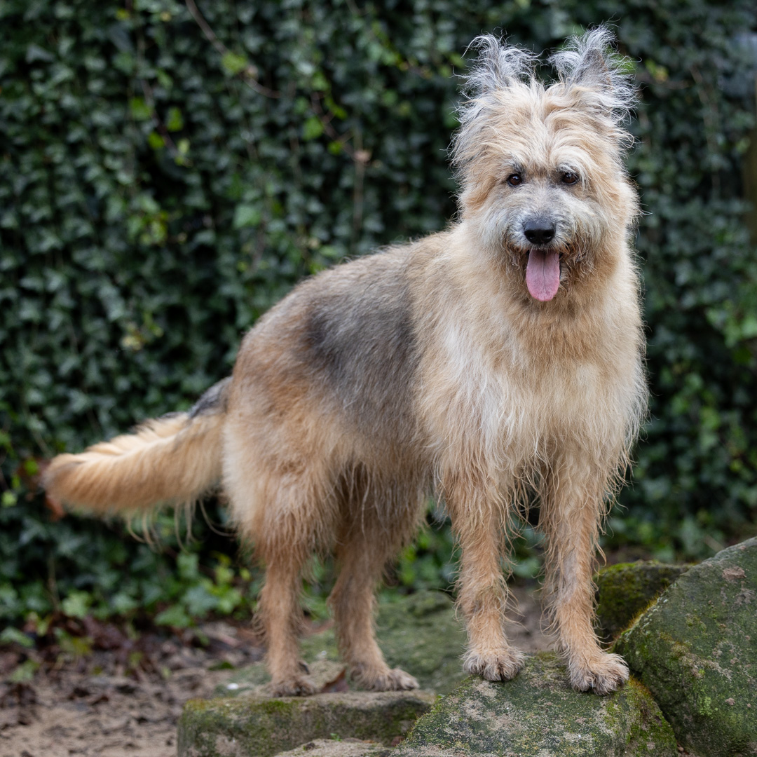 Hoi! Ik ben Athena. Ja, de Athena. Godinwaardig? Absoluut. Harig? Ook ja. Ik woon nu tijdelijk bij DOA, het dierenasiel, want mijn baasje is helaas overleden. Dat was natuurlijk verdrietig, maar eerlijk is eerlijk, het leven is veel te leuk om daar héél lang sip over te doen. En bovendien… heb je de mensen hier al gezien? Ze zijn allemaal verliefd op mij. Begrijpelijk. Ik ben een picardische herder, een ras dat blijkbaar zó zeldzaam is dat ze hier eerst dachten dat ik een soort van kruising was tussen een schaap, knaagdier, kanarie of een vleermuis met ambities. Vooral mijn oren zorgden voor verwarring. Maar goed nieuws: na grondig onderzoek zijn ze tot de conclusie gekomen dat ik toch echt een hond ben. Ik ben bijna 6 jaar oud en officieel een teef, maar eigenlijk ben ik vooral een blij ei. Als ik superblij ben (en dat ben ik vaak), spring ik bijna als een vogeltje op je schouder. Serieus, ik zweer dat ik kan vliegen… nou ja, bijna dan. Wandelen? JA. Maakt me niet uit of ik je net ken of al tien seconden, riem om en gaan! Buiten zijn is geweldig, mensen zijn geweldig en ikzelf? Ook best geweldig al zeg ik het zelf. Dus… zoek jij een unieke hond die een beetje schaap, een beetje kanarie, een snufje knaagdier en héél veel liefde is? Dan denk ik dat wij een match zijn. Ik zit hier bij DOA, klaar om mijn volgende hoofdstuk te beginnen.