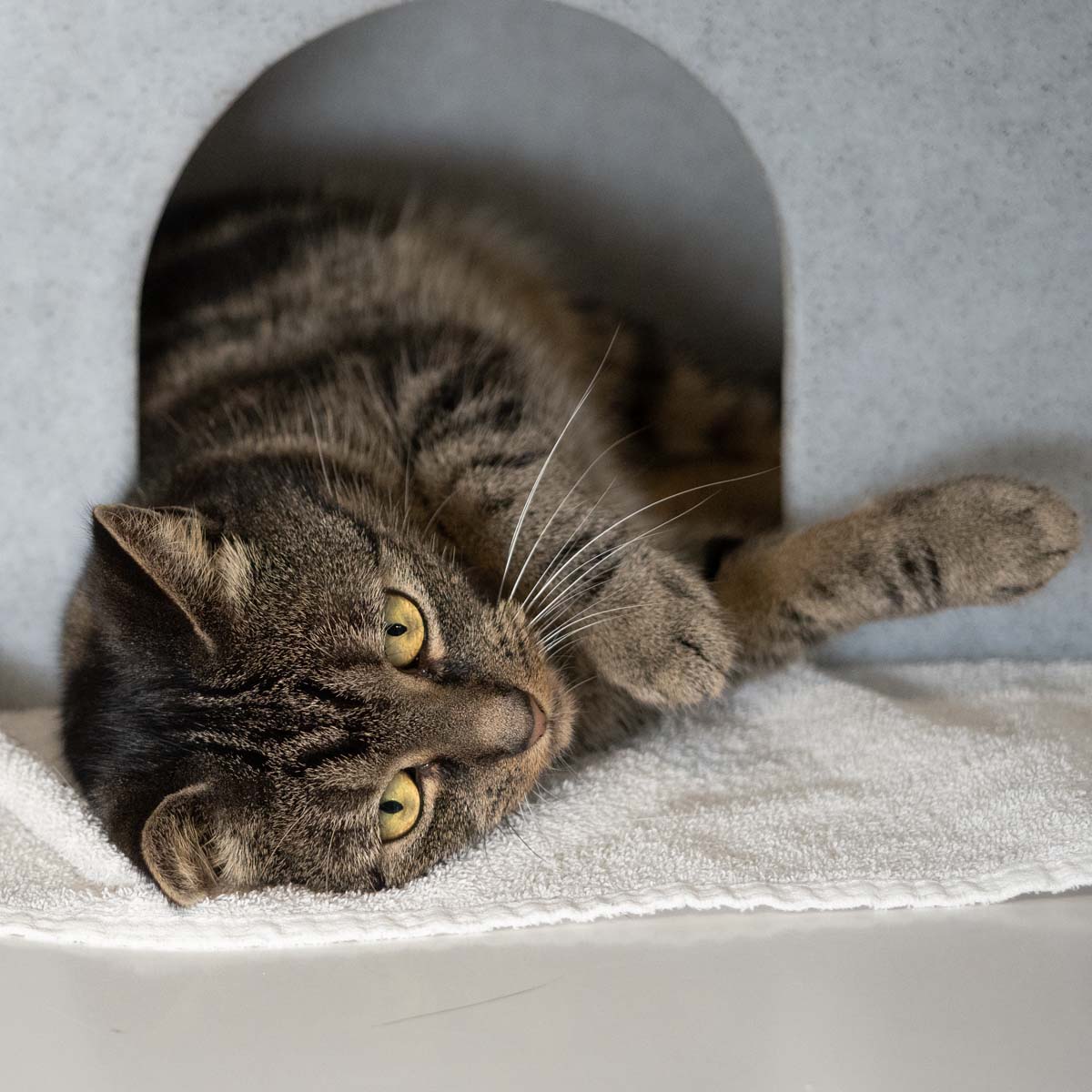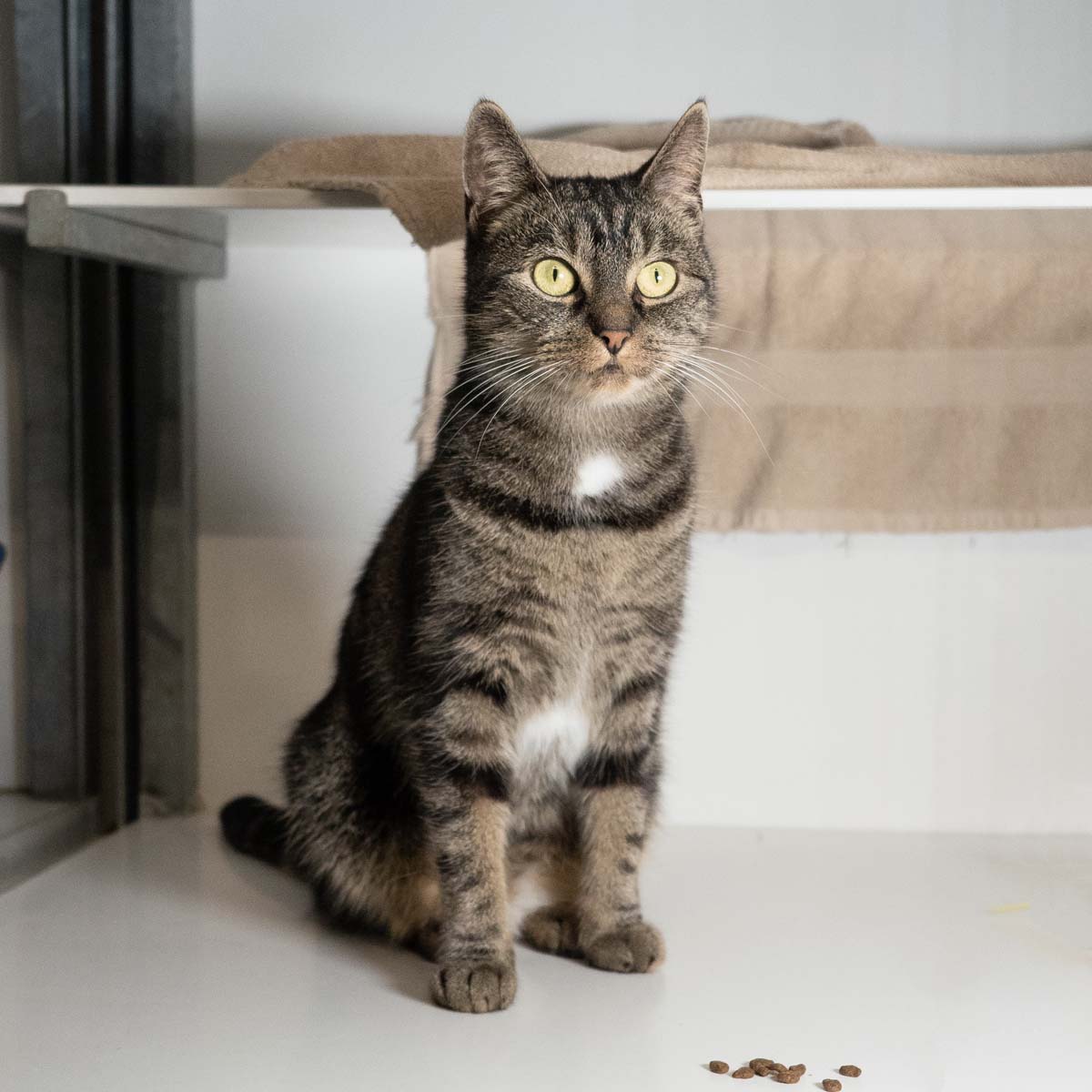 Haai, Grizzly hier. Eerst had ik een hele snoezige naam, maar dat paste niet zo goed bij mijn karakter. Ik kan namelijk onwijs pittig uit de hoek komen. Als je dan alleen al naar mij keek kreeg je een klauw naar je gezicht. Maar dat is nu niet meer zo hoor. Ik vind het tegenwoordig hartstikke leuk om geaaid te worden. Maar ik kan ook nog wel boos zijn als het niet op mijn manier gaat, of als iemand mijn eten afpakt bijvoorbeeld. Ik zoek een plekje waar mijn grenzen gerespecteerd worden en waar geen andere katten wonen in huis.