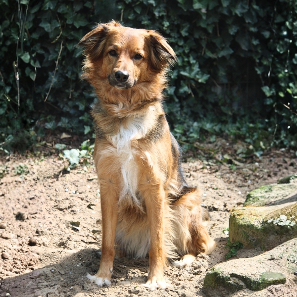 Ik ben een kruising met een Border Collie en dat betekent dat ik best slim ben, al zeg ik het zelf. Ik ben een lieve dame maar ik moet eerlijk toegeven dat ik soms een beetje onzeker kan zijn. Nieuwe mensen of situaties vind ik in het begin spannend, dus geef me even de tijd om je te leren kennen. Als ik je eenmaal vertrouw krijg je er een hele trouwe vriendin bij.
