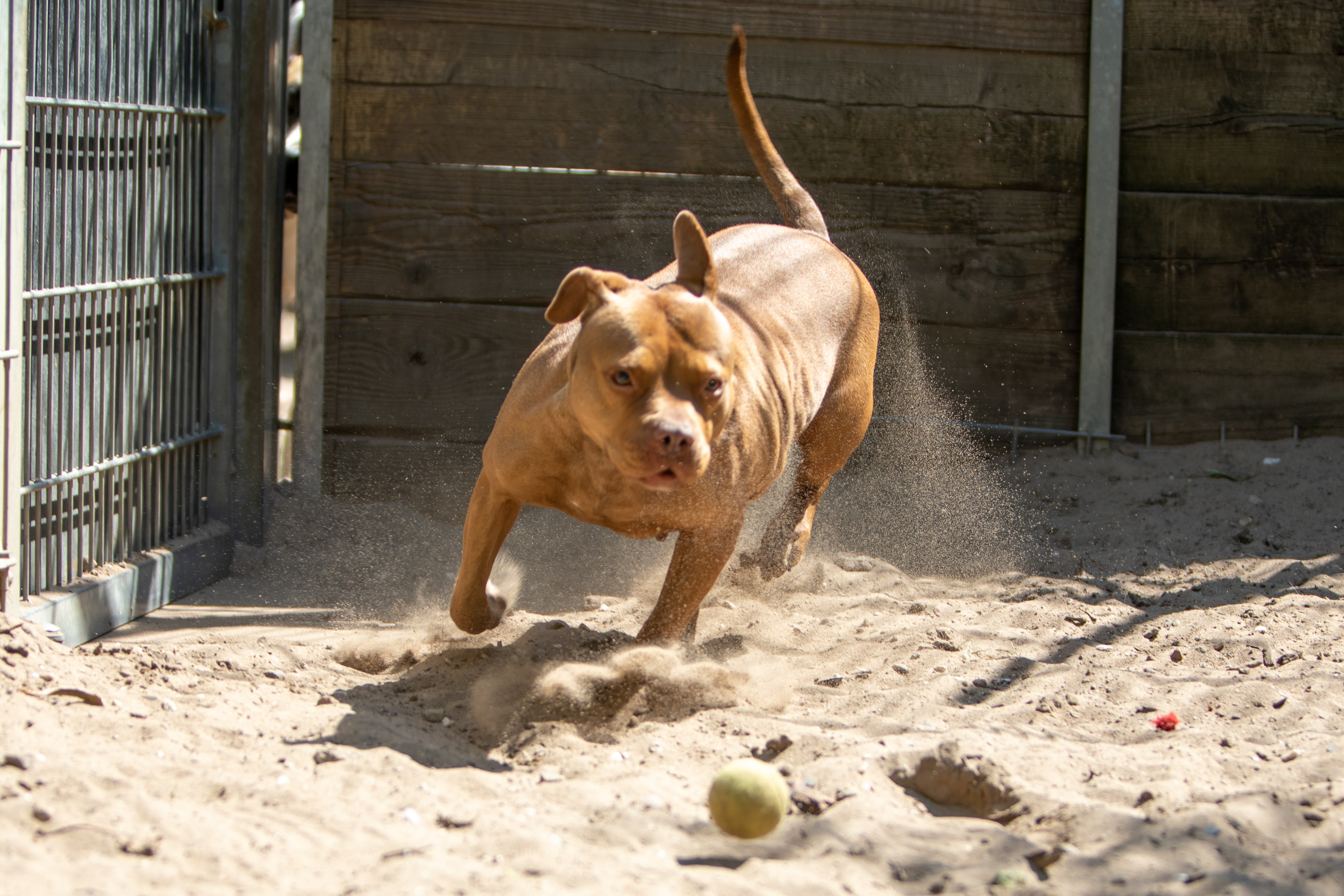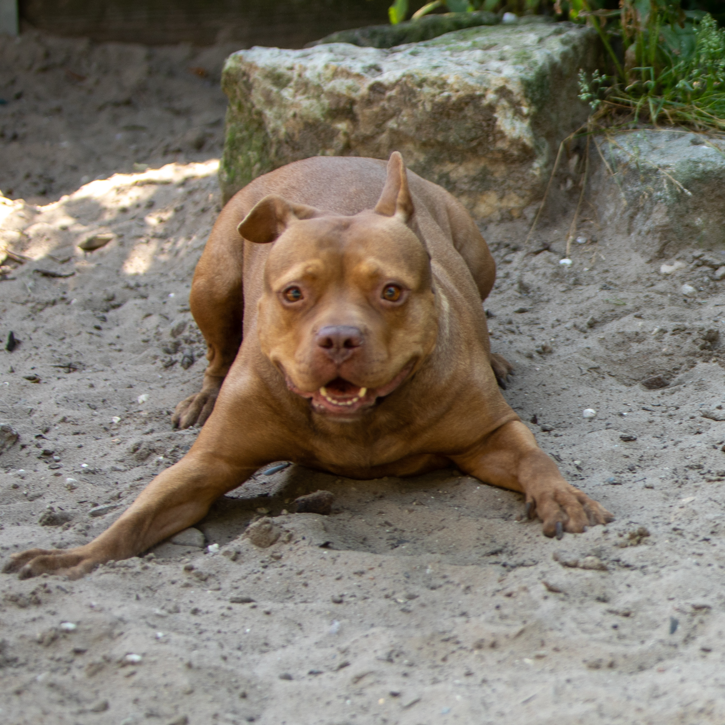 Geen kinderen. Kinderen? Nee, daar ben ik niet zo geschikt voor. Ik vind spelen zo leuk dat ik al snel denk dat kinderen ook speelgoed zijn en dat is natuurlijk niet handig met die kleine kinderarmpjes, want ik doe veel met mijn bek. Daarom zoek ik een huis zonder kinderen, waar ik gewoon lekker met mijn eigen speeltjes los kan gaan! Niet bang zijn hoor want ik bijt niet! Ik speel gewoon ruig met mijn bek.
