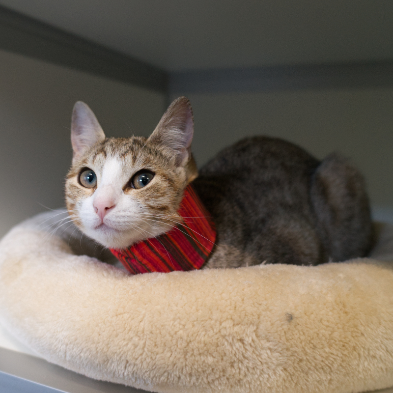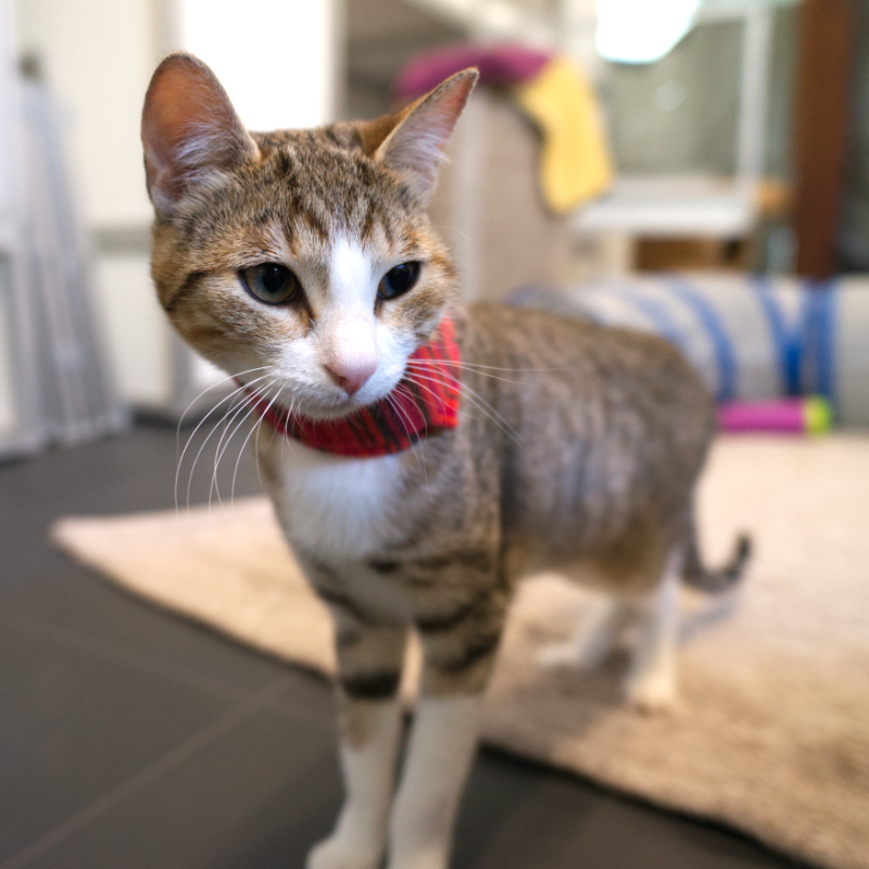 Leuk is anders maar de kraag die ik nu om heb is niet voor altijd. Ik heb een heftige voedselallergie waardoor ik hele erg jeuk krijg. Daarom had ik in mijn hals een grote wond gekrabt en daar moest ik een zalfje op en nu draag ik dus even een band. Als het zalfje niet meer hoeft en mijn medicatie begint te helpen dan ben ik klaar voor de volgende stap. Ik houd heel erg van spelen en knuffelen, en ben best avontuurlijk. Ik zou daarom eigenlijk heel graag in een huisje met een tuin wonen maar dat is voor mijn allergie echt niet handig. Daarom is een heel groot huis, of een huis met een heel goed afgesloten tuin het beste voor mij. Een andere kat zou ik misschien wel leuk vinden, maar ik vind niet alle andere katten leuk. Wie oh wie heeft een paleisje voor mij?